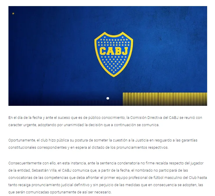 El 2 de junio del 2023, Sebastián Villa fue declardo culpable en su causa de violencia de género y recibió una condena de dos años y un mes de prisión no efectiva. Boca anunció mediante un comunicado oficial que el extremo no sería más tenido en cuenta para los compromisos de la Primera División. Entonces ahí comenzaron las idas y venidas del extremo que tenía un fin claro: rescindir su contrato.