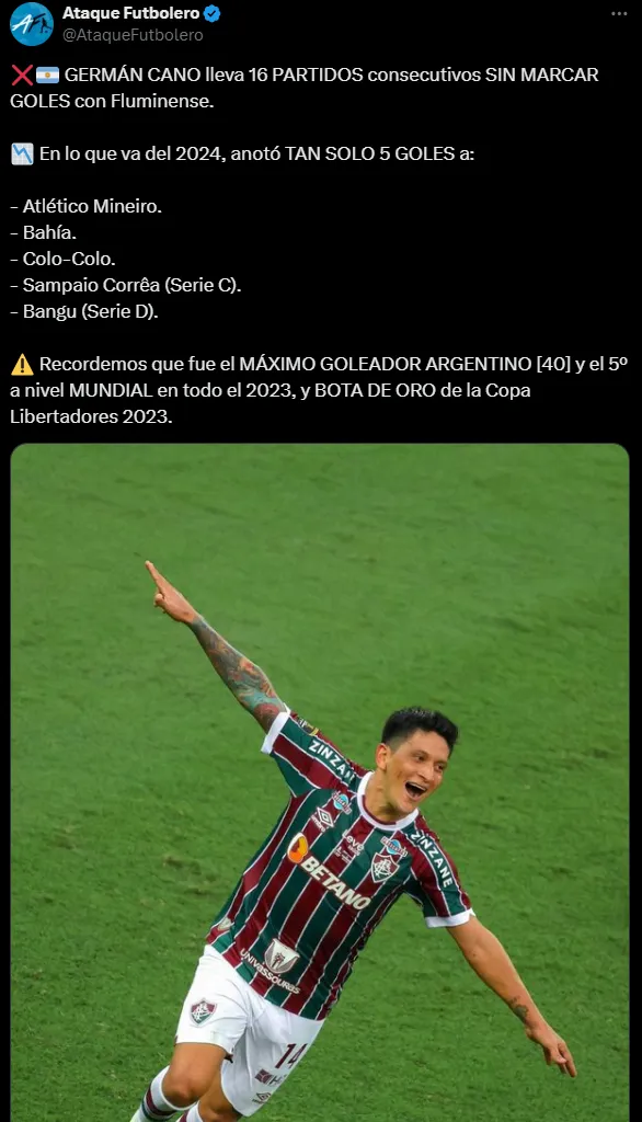 Pero el atacante argentino se apagó luego de ese encuentro, ya que pasó de ser el argentino con más goles (40) del mundo en 2023 a solo meter 4 en esta temporada. Lleva 16 partidos seguidos sin convertir y además perdió continuidad en el primer equipo, que no atraviesa un gran momento.