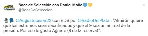 En cuanto a lo ofensivo, el estratega se inclinaría por un sistema compuesto por tres delanteros, algo que planteó en clubes como Lanús. Justamente, el periodista Augusto César dio a conocer una de las ideas del entrenador: “Almirón quiere que los extremos sean sacrificados y que el 9 sea un animal de la presión“.