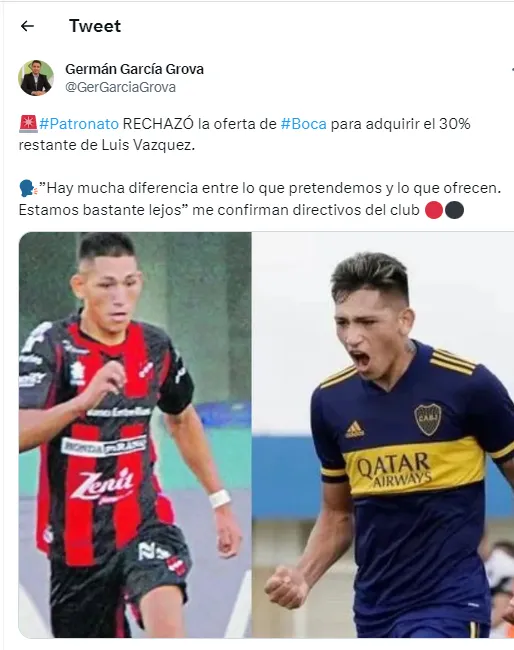 Por ahora, esa operación no llegará a buen puerto. Boca ya habría ofrecido una suma para hacer efectiva dicha posibilidad, pero según el periodista Germán García Grova la propuesta ya fue desestimada. ”Hay mucha diferencia entre lo que pretendemos y lo que ofrecen. Estamos bastante lejos”.