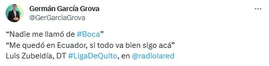 También hay que destacar que estos éxitos en Sudamérica no sólo atrajeron al club de la Ribera. En el fútbol argentino, hay varias instituciones que se encuentran en una situación similar al conjunto azul y oro y buscan un entrenador para el 2024. Uno de estos es Racing, club en el que ya tuvo una etapa entre 2012 y 2013. Más allá de todos estos sondeos, Zubeldía reconoció que está cerca de renovar en el conjunto de la capital ecuatoriana.