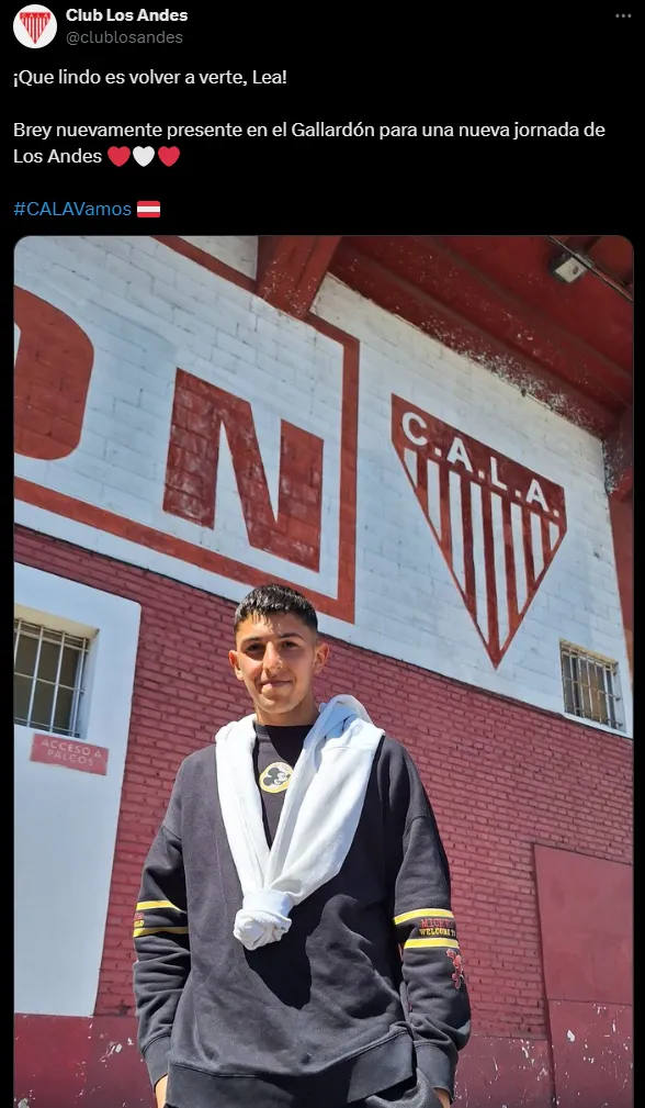 Este domingo, luego de estar en el banco frente a Racing, el arquero fue al estadio del Milrayitas. El motivo es que su hermano Marko, también guardametas, está convocado para el encuentro frente UAI Urquiza. “¡Qué lindo volver a verte, Lea!“, escribió la cuenta oficial del conjunto de Lomas.