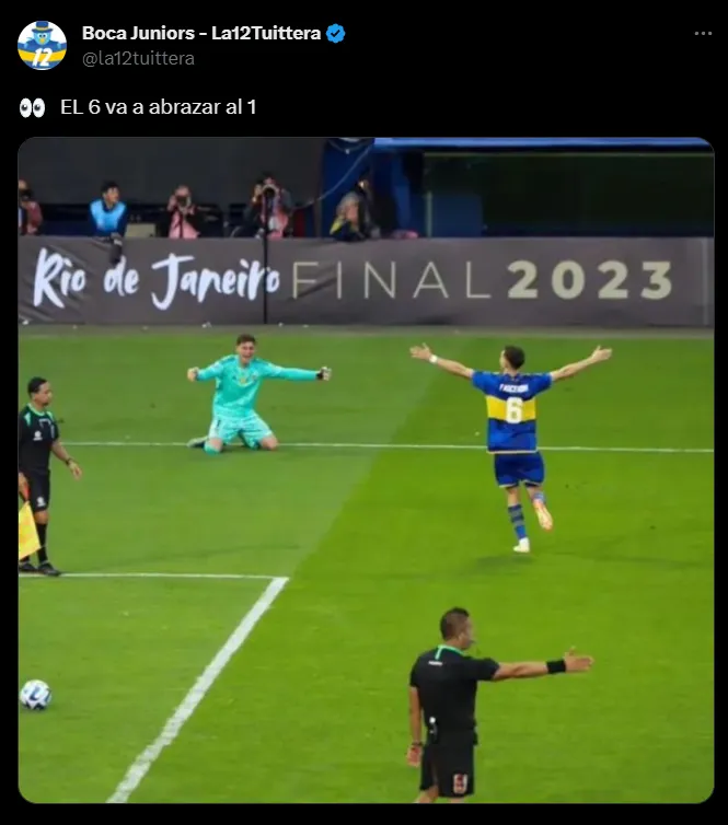 La misma es en el momento en que Valentín Fascendini anota el penal que le da el título a Boca y se dirige hacia Sebastián Díaz Robles para abrazarlo. El detalle que todos los hinchas notaron es que el zaguero central posee la casaca número “6” y el arquero la dorsal “1”, por ende la suma daría como resultado el “7” que tantos admiradores ven y por el cual se ilusionan con la Libertadores.