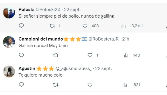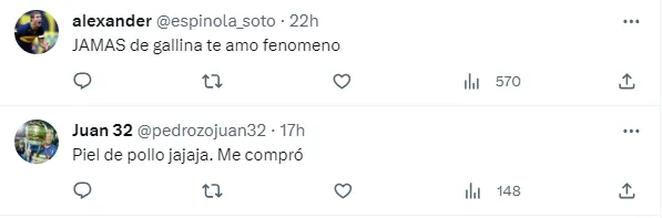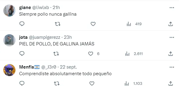 El tweet con referencia a la frase del Colo obvió todo el contexto emotivo y se situó solamente en que la figura evitó utilizar el término “piel de gallina” para decir “piel de pollo”. “Comprendiste absolutamente todo pequeño”, fue la frase que predominó.