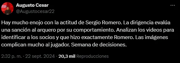 Al mismo tiempo, están viendo los videos para determinar qué hizo exactamente Romero y también identificar a los socios implicados en el caso. Las imágenes no dejan bien parado al jugador y se espera algún tipo de decisión al respecto.