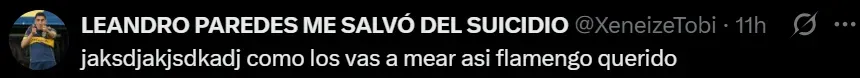 “Te quiero mucho Mengao”, “Flamengo, protagonista de mis días más felices como ser humano amante del fútbol. Les debo mucho”, “Gigantes”, ”JAJAJAJA”, fueron algunos de los comentarios que postearon aprovechando la cargada del equipo carioca a River por aquella final del 2019.