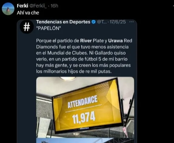 El domingo por la noche, River recibió a Platense por la primera fecha del Torneo Clausura 2025. Y, pese al triunfo del equipo de Marcelo Gallardo por 3 a 1, el eterno rival de Boca fue tendencia en redes por una situación que se dio fuera del partido.