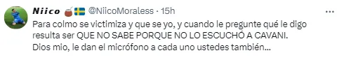 En síntesis, a los hinchas la historia no les terminó de resultar coherente y salieron en defensa del 10 de Boca: “Pero dice que la miró a la cara y la puteo, luego que no sabe lo que le dijo y luego lo invita que la putee en la cara”.