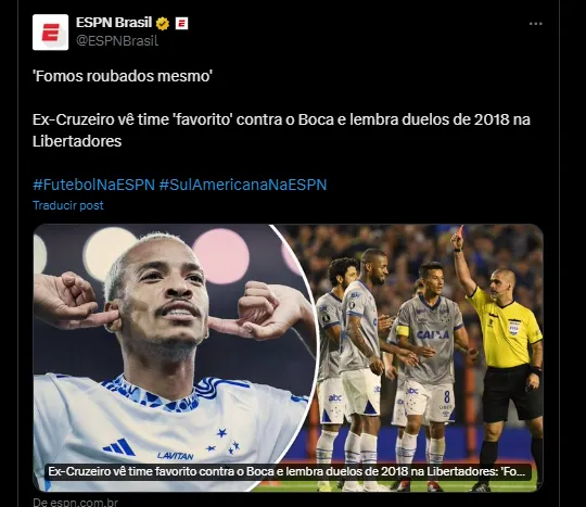 Boca y Cruzeiro se verán las caras por primera vez desde el cruce de cuartos de final de Copa Libertadores en 2018. Y en el rival tienen la sangre en el ojo: es que la elminiación de hace 6 años sigue presente. Y uno de sus protagonistas de aquellos partidos salió a condicionar el encuentro.