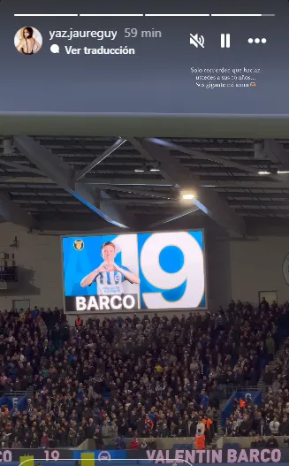 El Colo Barco estuvo en el ojo de la tormenta durante los primeros minutos de la derrota del Brighton frente al Manchester City. Un grosero error provocó el gol de Phil Foden para colocar el 3 a 0 en el marcador. En ese mismo momento, su novia Yazmin Jaureguy, publicó una historia en su cuenta de Instagram.