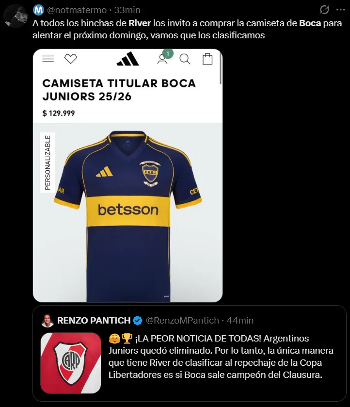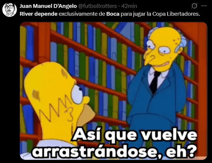 Los memes de los hinchas de Boca para River no tardaron en llegar. La dinámica fue simple: ahora el Millonario tiene que hinchar por el rival de toda la vida y los Xeneizes disfrutan de verlos así.