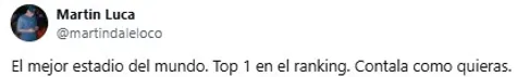 El primero en responder fue su colega Eduardo Feinmann, confeso hincha del Xeneize, quien manifestó: “¿Cómo medio estadio lleno?¿qué decís? Está picante…”. Lejos de apaciguar las aguas, Ricciotti retrucó: “Las cosas hay que decirlas como son“. Unos minutos después, este fragmento se viralizó por todos lados y los simpatizantes del Único Grande no tardaron en disgustarse por esta burla.