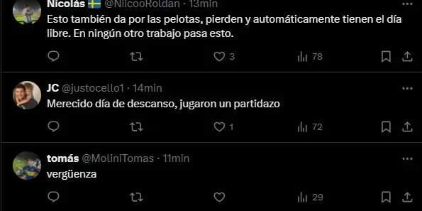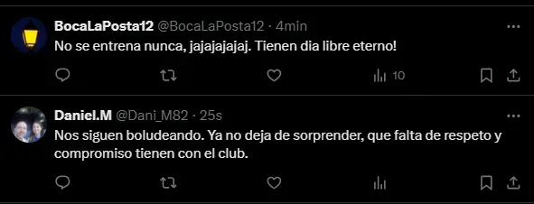 “Nos toman el pelo“, “Vergüenza“, “No te puedo creer“, “Falta de respeto“, son tan solo algunos de los comentarios que dejan en claro la postura de los hinchas ante la determinación del entrenador.