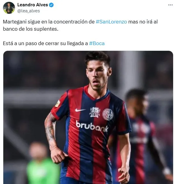 Unos días después, se dio a conocer la postura del presidente del cuadro azulgrana, quien había complicado la llegada de Martegani al Xeneize. El periodista Augusto César había dado detalles sobre ese tema y marcó: “Moretti frenó lo de Bareiro a River y lo de Martegani a Boca. Si San Lorenzo confirma que quiere 4 millones por el 80%, Boca lo deja. Si Martegani presiona, puede destrabar la operación. Ya frenó ir a Talleres”.