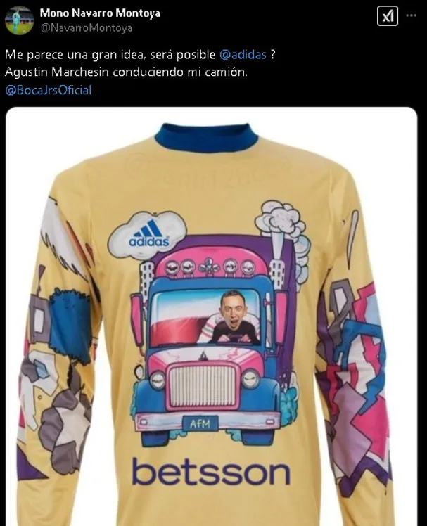 Las imágenes no tardaron en viralizarse y hasta hubo un intercambio de palabras entre colegas. Ahora, el ‘Mono’ se le ocurrió una propuesta y la hizo conocer en redes: quiere que el ex Lanús utilice aquel recordado buzo. “Me parece una gran idea, será posible Adidas? Agustín Marchesín conduciendo mi camión“, escribió en su cuenta de “X” (Twitter).