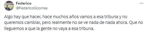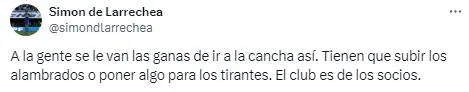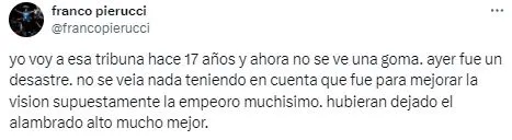 “No se ve nada“, “Estaba bien antes” o “Ayer fue un desastre” fueron algunos de los comentarios por parte de los hinchas que fueron testigos de lo sucedido en Brandsen 805. Por otro lado, otros simpatizantes del cuadro de la Ribera también expresaron su desacuerdo y propusieron soluciones: “Tienen que poner algo para los tirantes” o “Tienen que sacar las banderas lamentablemente“.