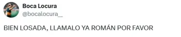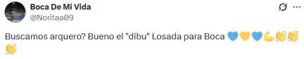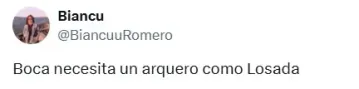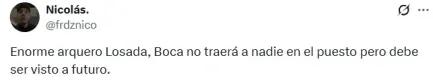 Unos cuantos hinchas del “Xeneize” elogiaron la actuación del guardametas. Y no solo eso, sino que ya lo pidieron como incorporación para 2026. “Que venga ya“, “Román llamalo ya por favor” o “Losada a Boca“, fueron algunos de los comentarios en “X” (Twitter).