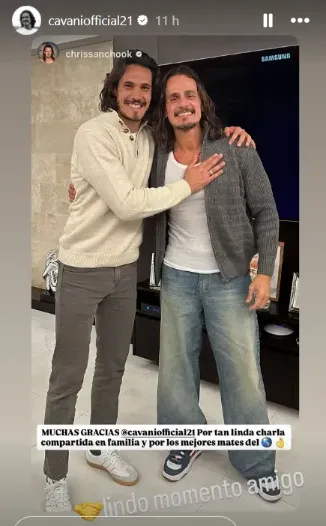 Edinson Cavani se juntó con el actor Christian Sancho poco antes de viajar con el equipo a Mendoza para jugar con Independiente Rivadavia. El rosarino y el uruguayo tienen un importante parecido físico y hasta protagonizaron publicidades juntos. “Lindo momento, amigo“, escribió el uruguayo reposteando la historia del actor.