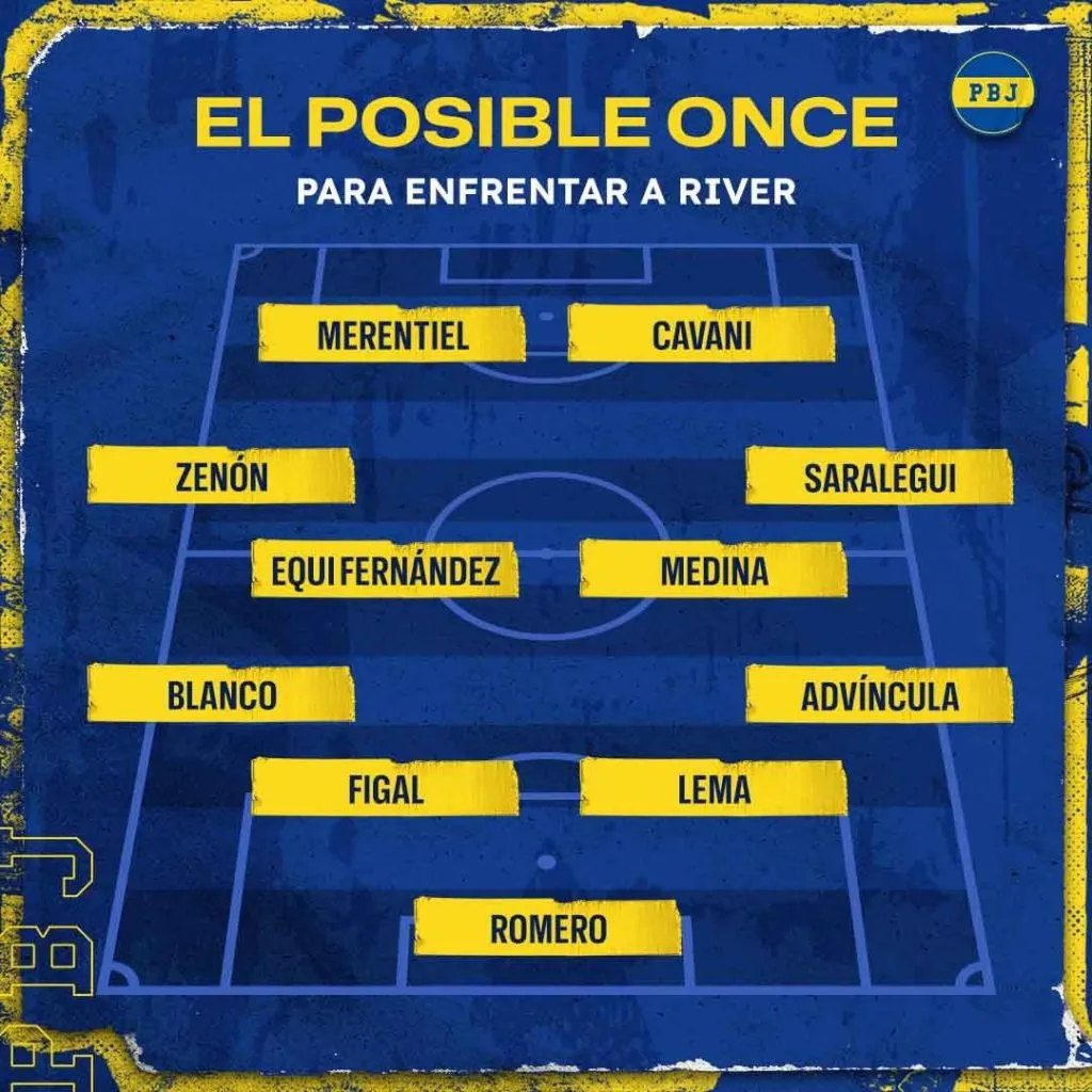 De esta manera, en el entrenamiento de este sábado formó con: Sergio Romero; Luis Advíncula, Cristian Lema, Nicolás Figal, Lautaro Blanco; Jabes Saralegui, Cristian Medina, Equi Fernández, Kevin Zenón; Miguel Merentiel, Edinson Cavani. La última duda para despejar estaba en el mediocampo ya que había cuatro jugadores para una sola posición.