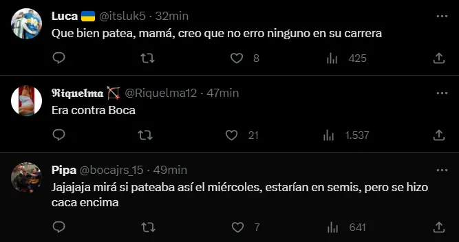 Luego de ver en Twitter el penal ejecutado por Piovi, los hinchas de Boca comenzaron a llenar de comentarios en tono de burla al jugador de Racing haciendo alusión que debía haber encajado el gol ante el Xeneize en la noche de Copa Libertadores.