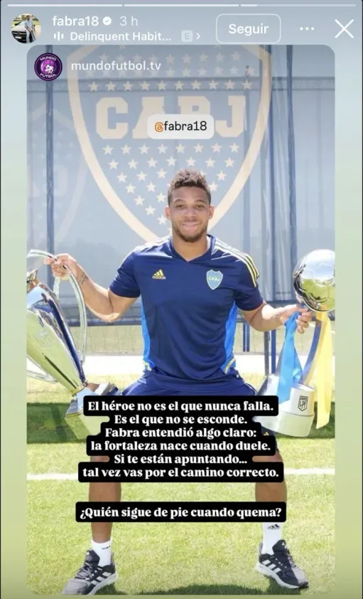 En esta ocasión, el futbolista reposteó dos publicaciones en las que fue etiquetado. “Cuando más te señalan, es cuando más carácter se necesita“, menciona la primera historia y a esto se sumó un segundo post con la ropa del “Xeneize”.