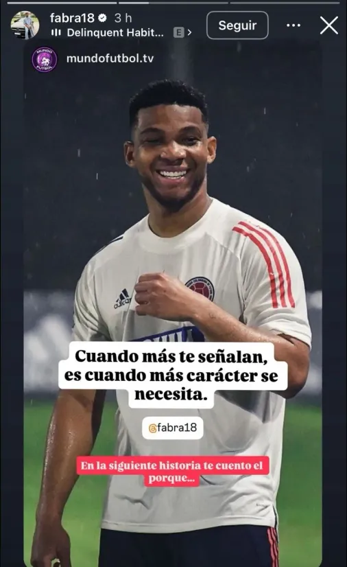 El lateral izquierdo está con el pase en su poder y aún no definió su futuro a pesar de las propuestas que le han llegado. Mientras tanto, el futbolista colombiano volvió a expresarse en redes y con dos fuertes ‘stories’ en su cuenta de Instagram.