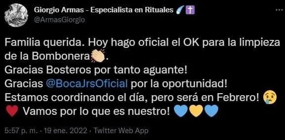 “Nos hicieron daño a través de la magia negra para tumbarnos, confirmo todo lo que dije hace un tiempo sobre la Bombonera”, explicó también Giorgio en su charla con el Diario Olé. Y añadió: “Los brasileños y colombianos son fuertes en estos temas de energía. En el campo de juego no pudieron haber hecho nada, pero sí en el vestuario, incluso sacrificado a algún animal. Llevaron su gente a hacerlo y dejaron la maldad”.