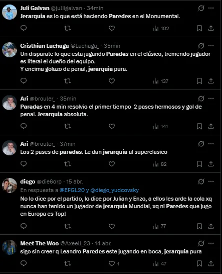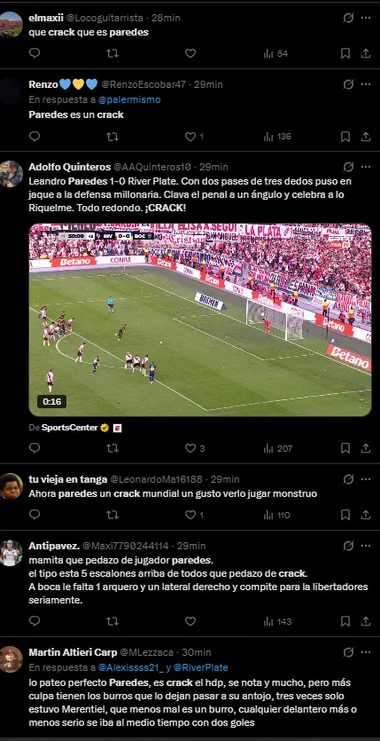 “Es un crack”, “Los bailó”, “Muchísima jerarquía”, fueron algunos de los elogios que recibió el capitán del Xeneize por su rendimiento contra el eterno rival. Su conquista en el final del primer tiempo terminó dejándole el Superclásico a los dirigidos por Claudio Úbeda.