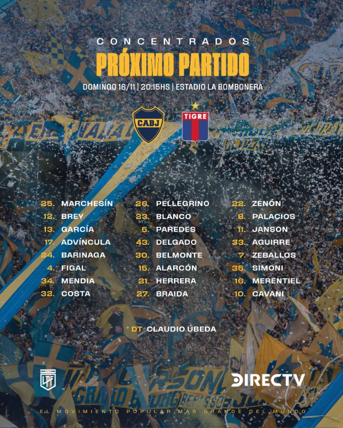 Claudio Úbeda ya tiene todo listo para el encuentro frente a Tigre en La Bombonera. El entrenador definió los concentrados de Boca y hay modificaciones en cuanto a los nombres con respecto a quienes estuvieron en el Superclásico.