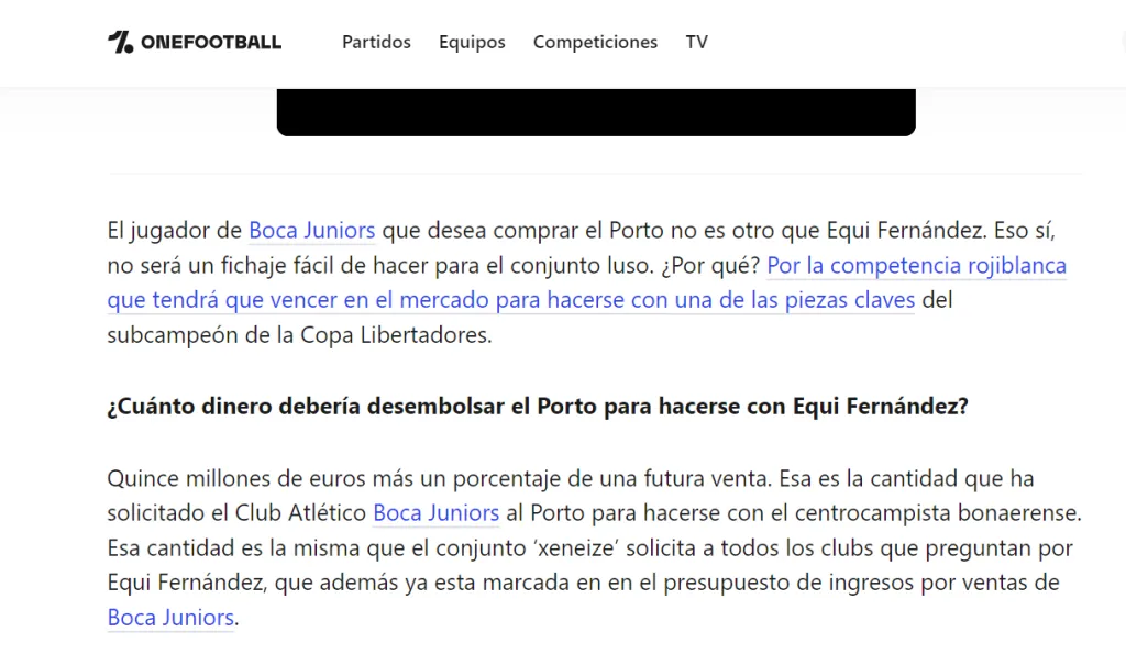 Fue el medio “One Football” que aseguró a través de su página web que Porto “desea comprar” a Equi Fernández en el mercado de pases que se aproxima. Aunque es el mismo portal que revela que los portugueses no la tiene fácil ya que lucharían con Atlético Madrid, que también lo tendrían en el radar.