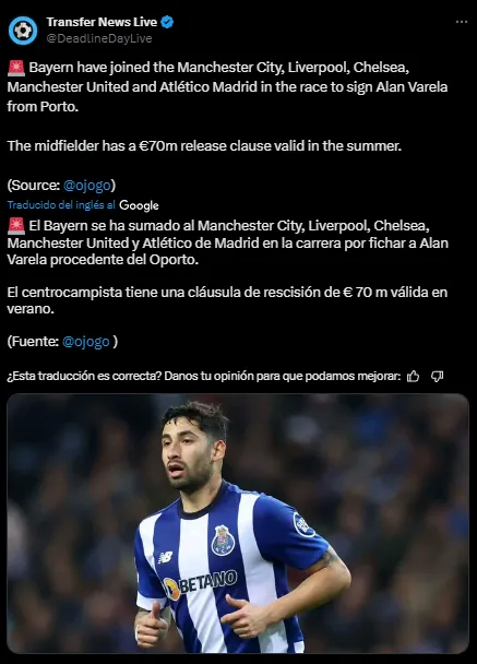 Alan Varela ahora es seguido de cerca por Bayern Múnich. Desde que arribó en Porto, el volante ha demostrado un gran rendimiento y se transformó en una de las figuras del Dragao. Esto hizo que varias potencias de Europa lo tengan en su radar, como es el caso del equipo alemán que quiere hacerse con los derechos del ex Boca.