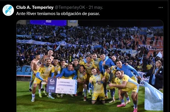 Cuándo eliminó a River en mayo, Temperley también gastó al Millonario a través de las redes sociales
