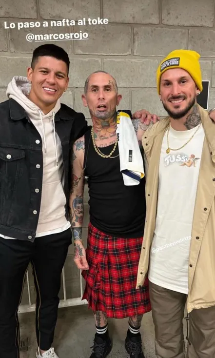 El grupo de cumbia de Concepción del Uruguay, Entre Ríos, brindó un espectáculo en Villa Crespo y ahí estuvieron Marcos Rojo, Darío Benedetto, Norberto Briasco y Luis Advíncula para presenciarlo y sacarse su foto con Emmanuel Noir, el cantante de la banda, quien compartió las postales en sus redes sociales.