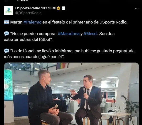 En ese entonces, en una entrevista con el periodista Gastón Recondo, el goleador remarcó: “No se pueden comparar Maradona y Messi. Son dos extraterrestres del fútbol. Lo de Lionel me llevó a inhibirme, me hubiese gustado preguntarle más cosas cuando jugué con él”.