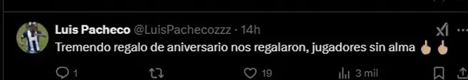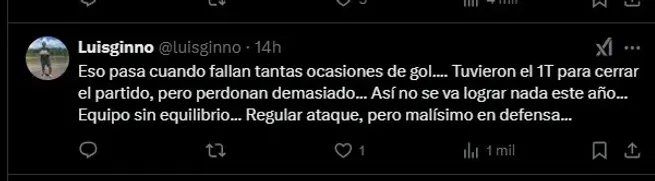 Alianza Lima perdió de visitante por 3 a 1 contra Alianza Atlético, uno de los clubes más humildes del campeonato peruano. Y, tras haber caído teniendo a varios de sus jugadores titulares en cancha, los hinchas hicieron saber su enojo en las redes sociales en la previa de partido ante Boca: “Jugadores sin alma”, “¿Hasta cuándo?”, y “No pueden relajarse así”.