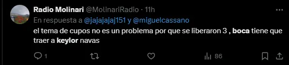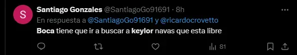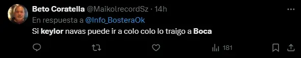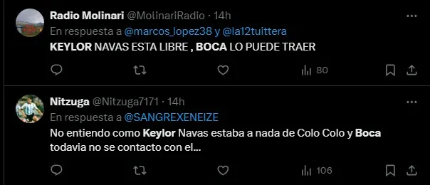 Por otro lado, un simpatizante demostró también su enojo porque el Xeneize todavía no hizo un intento para convencerlo de que llegue ahora mismo. “No entiendo como Keylor Navas estaba a nada de Colo Colo y Boca todavía no se contactó con él…“, soltó.