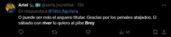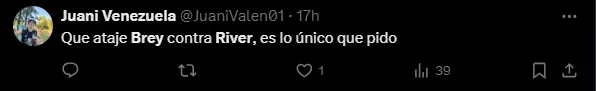 “Brey tiene personalidad de sobra para jugar ante River. Es el momento“, expresó un simpatizante en la red social de X (Twitter). En esa sintonía, otra cuenta fanática de Boca fue más contundente y marcó: “Contra River, Brey titular. No es un pedido, es una obligación“.