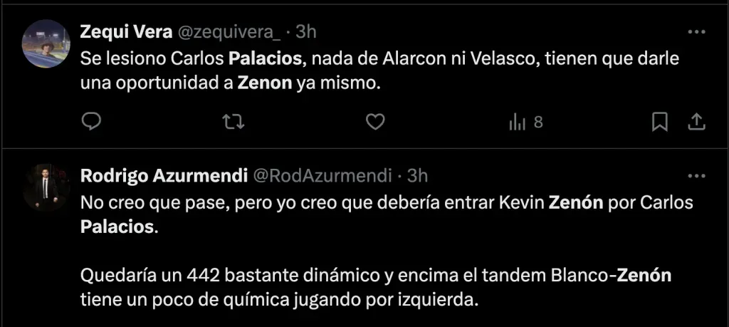 De esta manera, es muy probable que el delantero chileno se pierda el encuentro del fin de semana. Y ante esto, los hinchas de Boca pidieron a su reemplazante en redes sociales: Kevin Zenón.