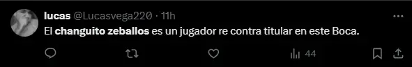 “Es momento que Gago ponga a los jugadores que estén bien. Zeballos tiene que jugar de titular”, fue el mensaje de un hincha de Boca que deja en evidencia lo que piensan la mayoría de los simpatizantes.