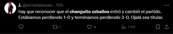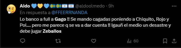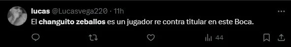 “Es momento que Gago ponga a los jugadores que estén bien. Zeballos tiene que jugar de titular”, fue el mensaje de un hincha de Boca que deja en evidencia lo que piensan la mayoría de los simpatizantes.