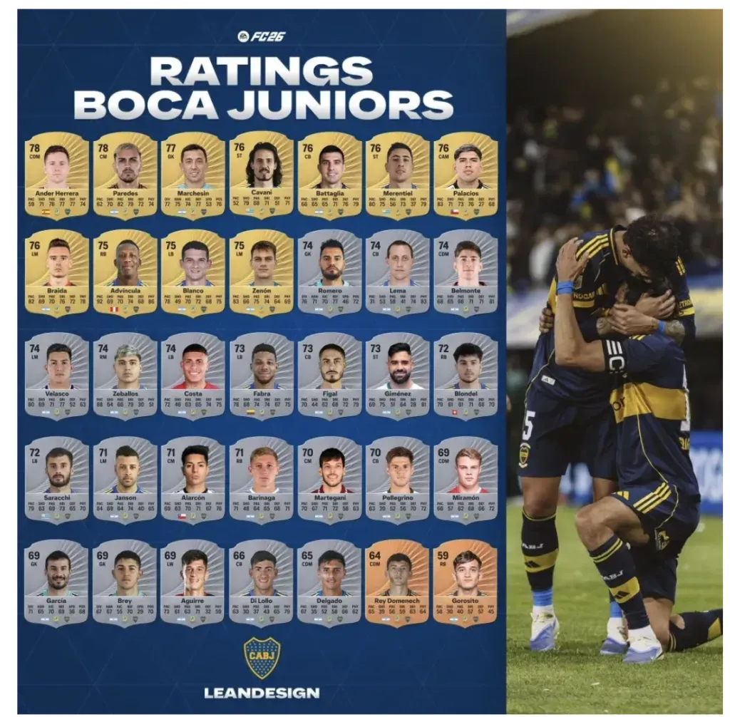 Algunos jugadores de Boca reaccionaron a las nuevas cartas que tendrán en el videojuego de fútbol EA FC 26. Con las valoraciones de cada una, las cuales indican el “nivel” de cada jugador dentro del juego.