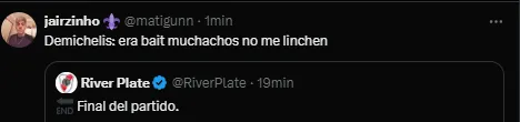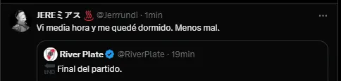 “Es un papelón“, “Cómo te gana una lata de energizante“, “Resista, Micho querido“, fueron algunos de los comentarios de los hinchas de Boca. La derrota del clásico rival no pasó para anda desapercibida para los fanáticos y no dudaron en salir a gastar al Millonario por su histórica derrota.