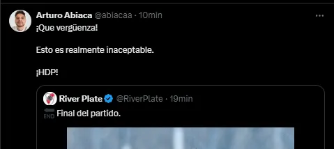 Alan Barrionuevo abrió la cuenta con un cabezazo tras un buen tiro libre y Nicolás Benegas, ex Boca, puso cifras definitivas con un gol de penal en los últimos minutos. Los hinchas de varios clubes, pero puntualmente del Xeneize, no perdonaron la derrota de River, que quedará marcada en la historia.
