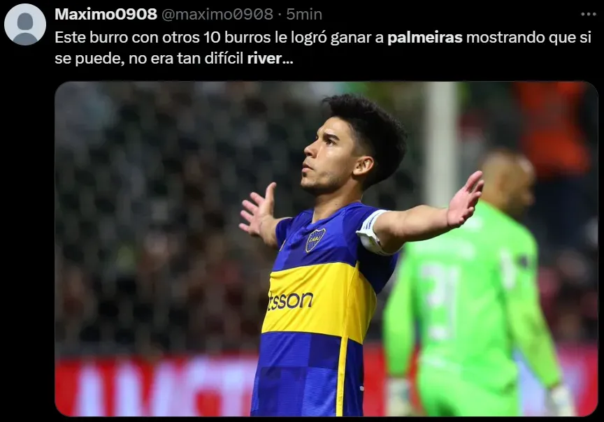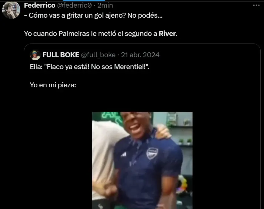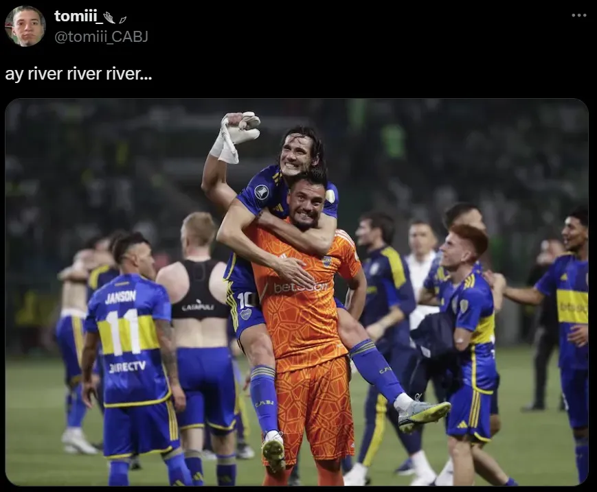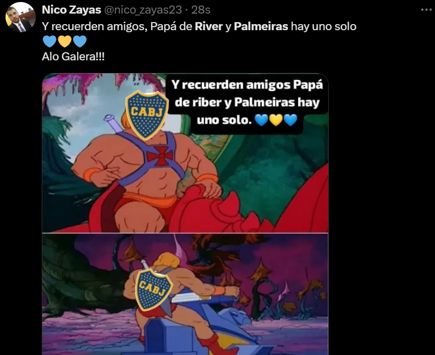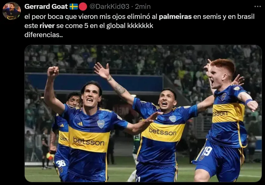 Por supuesto que el hincha de Boca sabe que este año no jugó la Copa Libertadores 2025 y lo que eso implica. Pero eso no pudo evitar las risas y las cargadas para River por quedar afuera del torneo continental ante el Palmeiras en Brasil.