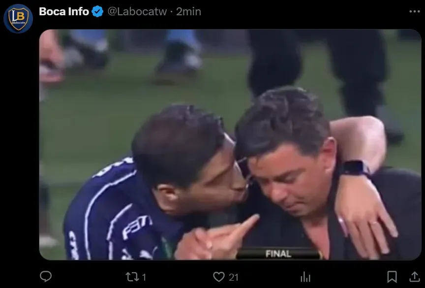 El equipo de Marcelo Gallardo fue eliminado del certamen por el conjunto que conduce Abel Ferreira y los memes no se hicieron esperar. El entrenador del Millonario y algunos de sus jugadores fueron el foco principal de los chistes, que ya son virales en las redes sociales.