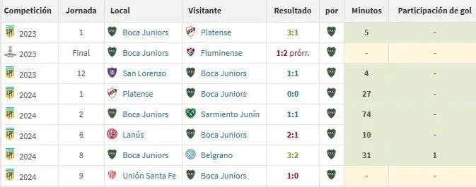 Ante esta polifuncionalidad, el juvenil de 22 años estuvo presente en todos los partidos que disputó Boca en la Copa de la Liga. Teniendo en cuenta sus participaciones, el atacante sumó 314′ en lo que va de la temporada y su última titularidad se dio en la segunda fecha frente a Sarmiento de Junín en La Bombonera.