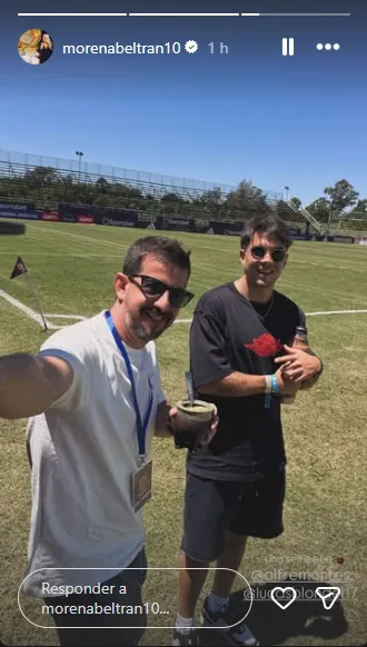 Se trata de Lucas Blondel, que no fue convocado para el último partido frente a Tigre. Morena Beltrán subió una foto suya junto al periodista Alfredo Montes de Oca donde se puede ver al jugador de Boca vestido de civil. Claramente no estaba para jugar pero sí para acompañar a su pareja, que está cubriendo el evento para ESPN.