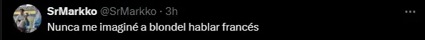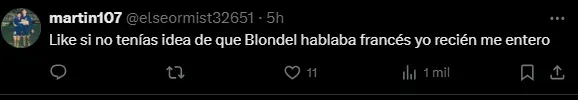 “Lo veo y parece editado. No lo puedo creer“, fue el comentario de un usuario de Boca en X (Twitter) dejando a entrever que le sorprendió escucharlo a Blondel hablando en esa lengua. En esa misma sintonía, otro simpatizante también marcó: “Nunca me imaginé a Blondel hablando francés“.