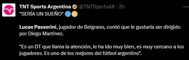 Boca piensa en lo que será su 2024 y uno de los temas centrales será el próximo mercado de pases. Por ende, a la espera de lo que suceda en las próximas elecciones, ya han aparecido varios nombres en las listas tanto del oficialismo para reforzar el plantel. Sin embargo, en las últimas horas, un nuevo apellido fue vincualdo con el club de la Ribera y el mismo no fue puesto en mesa desde las inmediaciones del club. ¿De quién se trata? De Lucas Passerini, actual centrodelantero de Belgrano de Córdoba.