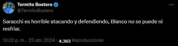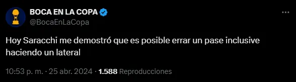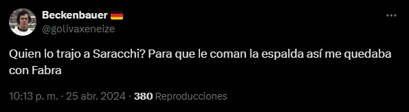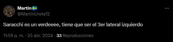 “Ni una bien hizo“, fue el comentario de un fanático del Xeneize a través de la red social de Twitter. Además, otro simpatizante apuntó contra Saracchi y, al igual que muchos otros hinchas, remarcó: “Lautaro Blanco no se puede ni resfriar“.